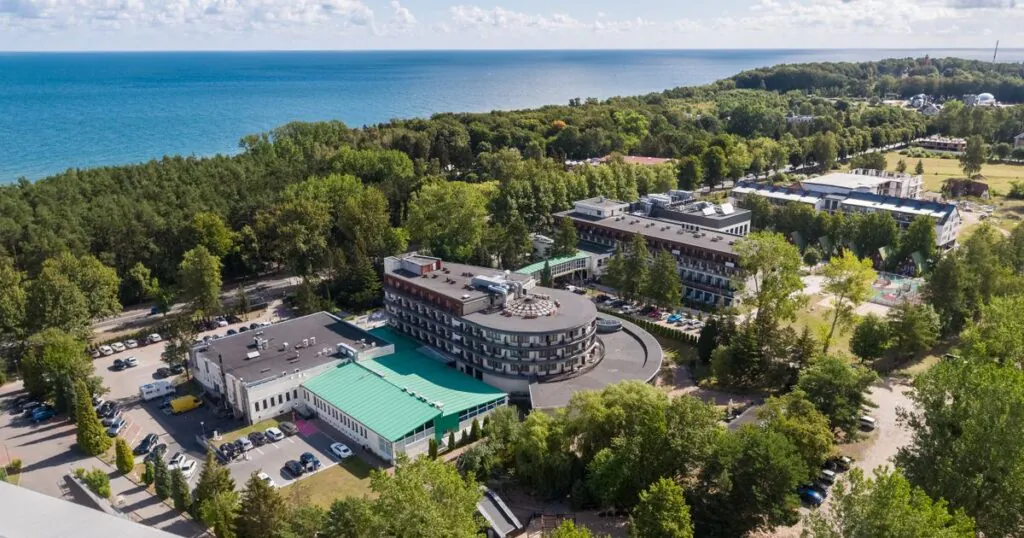 - ✅ Warto wiedzieć: Unikalne położenie obiektu daje możliwość korzystania zarówno z plaży morskiej (ok. 150 m), jak i uroków jeziora Jamno. Hotel jest bardzo ceniony przez rodziny, dlatego warto rezerwować pobyt z wyprzedzeniem.