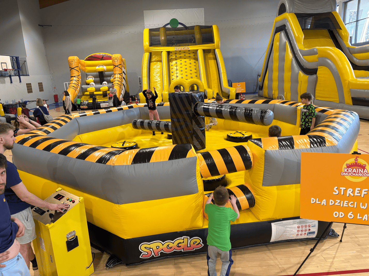 Minimalne zamówienie to 3 godziny aktywności. Standardowy wynajem to pełen dzień (do 8 godzin). Dla eventów firmowych i festynów Spogle oferuje elastyczne pakiety godzinowe z obsługą animatora.